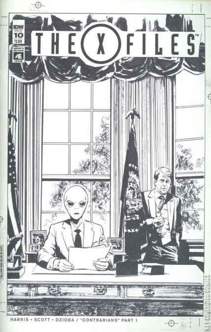 Contrarians, Part 1 (of 2): Mulder chances upon evidence that suggests the now-defunct Syndicate's involvement in the Iran-Contra affair. Guest-starring the Cigarette Smoking Man and President Reagan! * Executive produced by The X-Files creator Chris Carter! * Part of IDW's Artist's Edition Cover Month!