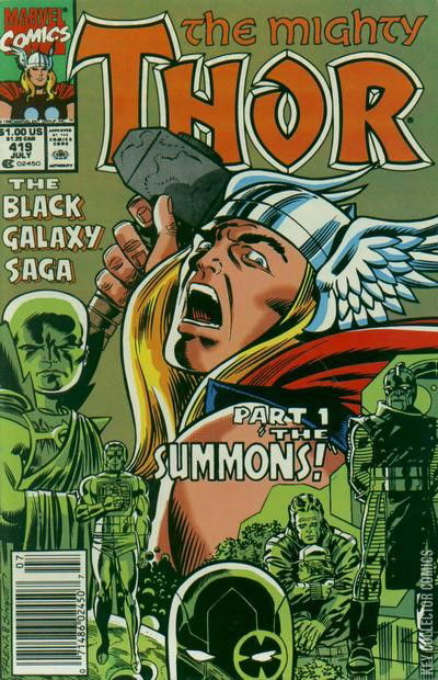 Home / Marvel / Thor / Thor #419 Marvel Released July 1990 Thor #419 Add to Collection Want It Synopsis No synopsis available. Issue 294 of 407 Add to Collection Buy it on eBay Buy on eBay Low $1 Mid $2 High $3 Synopsis No synopsis available. Details Series Thor Cover Date July 1990 Pages N/A UPC 07148602450707 Cover Price $1.00 Final Order Cutoff N/A Creators No creators listed. Price Guide Log in or subscribe to access detailed graded price information and market insights. Log In Subscribe