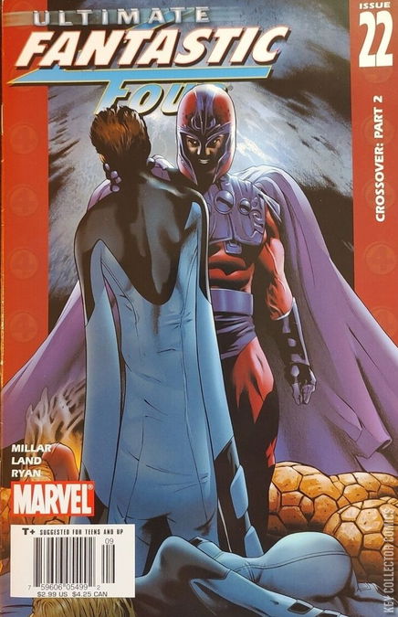 CROSSOVER PART 2 The background of the other universe is briefly given before going back to Reed and the zombie Fantastic Four. Reed asks them why they brought him to their universe, and they reply that they just ran out of food. Mr. Fantastic wraps himself around Reed, demanding Invisible Woman to trap him in a force field, but she hesitates and Reed escapes into the sewers. Human Torch follows him, but Reed escapes into the streets, where Spider-Man webs him up against a wall. They all talk about "missing a fantastic specimen running through Manhattan." However, Hulk comes through a building and tries to eat Reed, but is hit by a semi truck. The other zombies run from a rain of cars, controlled by Magneto. Magneto tells Reed that he "is all he has right now."� Meanwhile back at The Baxter Building, Johnny asks Sue where Reed was. They travel to Reed's lab along with Ben, and they encounter Reed's teleporter. Back in the other universe, Magneto shows Reed his refuge, made out of a railway tunnel blocked with cars. Reed encounters three other survivors, one of whom points a gun at Reed, saying that Reed was a super hero and will be infected. Magneto tells her to put her gun down and introduces the other survivors, a man and his diabetic daughter named Mindy (who is running low on insulin). Mindy and Magneto ask Reed if he is related to Mr. Fantastic from that universe, to which Reed replies that he's from another universe. Magneto asks Reed that if he's given the infected a chance to go to another reality, which Reed realizes that Magneto's right. But back at Reed's lab, the teleporter becomes activated. Sue asks if Reed is coming through, but its revealed that it is the zombie Fantastic Four.
