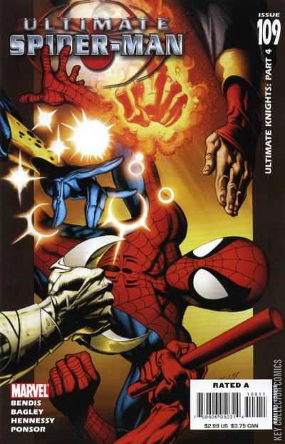 ULTIMATE KNIGHTS: PART 4 After finishing his court case, Matt Murdock, with his ability, overhears a news outlet of a "masked vigilante" attacking Midtown High School looking for Spider-Man. Matt then excuses himself to Foggy Wilson. At a basement, Spider-Man (unmasked) is tied up to a chair and awoken by Wilson Fisk. Present in the room are Fisk's henchmen and Ronin. Fisk fully informs Spider-Man that even though he could identify him but knowingly acknowledge he would be arrested by Nick Fury, but he knows Spider-Man goes to Midtown High and have the opportunity to "blow up" the school , or to firebomb the "Xavier School of Mutants" that Spider-Man's "little girlfriend" attended (after having acknowledge via the internet) if the hero tries to interfere his operations. Continuing his words, the Kingpin informs Spider-Man that even though he have the chance to kill the hero on sight, the reason is that he owns all the media franchise base on Spider-Man. Seeing that how "popular" that Spider-Man is by the people, Wilson figures that having the Spider-Man franchise would further enrich him and that nothing that will ruin him including Spider-Man compare to owning the franchise. Changing topics, Fisk then tells Spider-Man to have his "little gang of knights" to "cut it out", surprising the hero. As Fisk said this, he punches Ronin and ruthlessly assaults him, acknowledging Ronin's identity. Having unmasking Ronin, Fisk tells him and Spider-Man that Matt Murdock works as his lawyer and that he is responsible for tricking and betraying the Knights. After punching out Ronin, Fisk kicks Spider-Man to the floor and tells him to the Knights that they would be kill if they try to stand against Fisk. However, seeing that killing Spider-Man would "upsurge" his market, Fisk considers it best to have him alive and continuing committing heroic works will help his profits and swears that even if Spider-Man quits being hero, he would hire someone to be Spider-Man for him. Sometime later, Daredevil breaks into Wilson Fisk's office and finds it vacant. He then uses the office's phone to contact Dr. Strange, who is busy "meditating". Strange teleports into the office and is inform by Daredevil of Spider-Man's kidnap, and how he tracks him by scent, and request in help finding the hero. Strange uses his magic and creates a astral vision of the room showing the past events of Ronin delivering Spider-Man to Wilson Fisk, and taking Spider-Man away. Acknowledging Moon Knight's identity as Ronin, Strange suspects of him betraying the team but Daredevil is doubtful of it but reconsiders their suspicions later. The two then tracks their way to the basement of the building, but only finding it empty. Strange projects his magic revealing Spider-Man being beaten by Fisk and is then abandoned after Fisk and his men departed. Concerned, Daredevil request in gathering the remaining Knights. Later, the Knights group on the rooftop near Daredevil's firm and talks of rescuing Spider-Man. Iron Fist concerns that Moon Knight betrays the group, but Daredevil still reconsiders Moon Knight's treachery and is then attack by Spider-Man. The other Knights tries to stop Spider-Man but learns from him that Daredevil as the traitor to the team and that Fisk knows about them. The group are surprised of the information as Daredevil tries to alarmingly reaffirms Spider-Man's information and his law firm is destroy in a explosion, but fortunately empty. Daredevil reinstate to the group that he isn't a traitor and that he have been against the Kingpin for killing his father, and manipulating the justice system. He tells to Spider-Man that the likely reason Fisk tells him of Murdock being a traitor was a way of getting back at him. The group debates of who the traitor is in their team, and Daredevil suddenly knows that Iron Fist is the actual traitor. Further stating that he is a "human lie detector", Daredevil forceful demands Iron Fist what he told to the Kingpin.