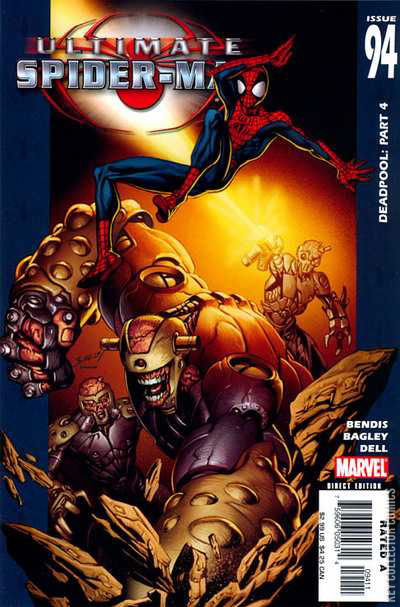 DEADPOOL PART 4 Krakoa's host Augustus Beezer reviews the events in the previous issue and right up to Deadpool's identity being Professor Xavier. The X-Men are shocked of Deadpool's "identity" and believes him to be Prof. Xavier. But Spider-Man see's through Deadpool's trick due to his Spider-Sense, in which the mercenary at first tricks the X-Men to kill the web-slinger and soon dropping his charade by immediately shooting everyone. Augustus Beezer explains to the viewers about Deadpool's trick was due to his image distorting cloaking device that was previously used in impersonating Shadowcat when subduing Spider-Man, and reveals the real Prof. Xavier being held prisoner into watching the events between his X-Men, Spider-Man and Deadpool while being mocked by Mojo Adams. Back in the jungle Spider-Man, Shadowcat, Colossus, Storm, and Nightcrawler have escaped from Deadpool. Meanwhile, Deadpool and the Reavers takes a brief break. Deadpool, while putting on his mask, announces to the Reavers that they must finish in killing off the X-Men, and decided that Spider-Man must be eliminated first due to the fact it has been him that kept the Reavers from annihilating the X-Men (also from Deadpool's personal reason, Spider-Man has been "getting on all [his] nerves"). Deadpool contacts Augustus on finding Spider-Man's location and locates him. Deadpool then has one of the Reavers, Cruise, to snipe Spider-Man and apparently killing him. At this point Deadpool and the Reavers attack the X-Men. However, Shadowcat, enraged of Spider-Man's injury, viciously attacks the Reavers at ease until being stunned and held at gunpoint by Deadpool. Fortunately, Nightcrawler jumps on Deadpool from behind and forces the mercenary to be shot by one of the Reavers. Wounded, Deadpool is then picked up by Angel and then being dropped hundreds of feet to the ground. As he gets up, Deadpool is assaulted by a recovered Spider-Man. As the Reavers are on the losing end, Deadpool is repeatedly pummeled by Spider-Man, and his mask is taken off, despite the mercenary's protest, revealing his real facial identity: a heavily skinned and revealing skull, shocking everyone present. Enraged, Deadpool fights back and begins randomly shooting his opponents. Augustus Beezer again, nervously, explains to the viewers of Deadpool's facial appearance as the process of surgical experiments that the Reavers have undergo before as mention earlier. But Deadpool "took it as far as a man can." Deadpool pins Spider-Man to the ground and prepares to kill him. Shadowcat quickly has Colossus to throw her at Deadpool, phasing pass through him. This cause Deadpool to violently explode and leaving no remaining traces of him. The remaining Reavers attempt to avenge Deadpool's death, but are cut short by the arrival of Cyclops and Jean Grey. The reunited X-Men and Spider-Man then assaulted Krokoa's station, in which Jean Grey angrily confronts Augustus and read his mind of Prof. Xavier's location right before berating the television audience for watching Krokoa's 'show' and ending the program for good. In another part of the station, Mojo is shocked of what is happening and suddenly finds Prof. Xavier escaped from his restraints. As the X-Men and Spider-Man heads towards to the Professor's location they hear a terrified scream (presumably Mojo). Prof. Xavier appears before them in his wheelchair and tells them of leaving Krokoa, and then thanking Spider-Man for helping them. Everyone then leaves the island via jet. As they have left, on Krokoa's beach a battered and recovered Deadpool watches them while clutching on to his mask. In Queens, Shadowcat and Peter Parker arrives back. As they walk to the Parker's residence, Peter is worried that given the fact that he has been missing for a day, his aunt will demand of his disappearance and ultimately telling his secret identity to her. When the couple enter into the house, they find May not being there. Kitty then notice that Peter has a phone message. From this message they learned that May have been spending a night with her date, Miles Warren, much to Peter's surprise and fortunately allowing him to still keeping his identity a secret.