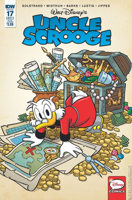 "Scrooge Vs. Scrooge!" When Scrooge McDuck's life story becomes a virtual reality experience, Donald Duck thinks he can battle through it, himself-and end up richer than his uncle! Presenting a "new" Carl Barks story: left undone in the Golden Age, now completed by modern master Daan Jippes! Continues this beloved series' legacy numbering at #421!