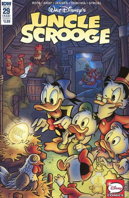 'The Great Cackle Caper!' When golden eggs show up at the McDuck Chicken Farm, the terrible Beagle Boys hatch a plot to rule the roost! Then Gyro Gearloose invents his way into 'The Terrible Thinking-Cap Tussle!' Bullet points: * Continues this beloved series' legacy numbering at #433! * Beloved Marco Rota is back with a wild, new-to-USA Beagle Boy battle!