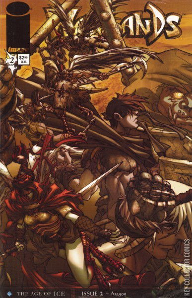 "Aragon" In the clutches of the Ryotian Empire, our heroes soon discover that the lines between allies and enemies are not as clear-cut as they believe. Held captive inside an enormous underground city, they must plan a way to escape the Aethril mines, and convince others to resume the fight to save Warlands from utter ecological disaster. Meanwhile, Zeph encounters an old enemy as he tries to find a way to free his companions and escape the most heavily fortified city on the continent. Also included in this issue is a special five page flipbook of the upcoming Warlands title 'Banished Knights', which tells the dark tale of the aftermath of the Darklyte Crusade, told from the perspective of it's losers, the scattered remnants of the Vampire Horde of Datara.