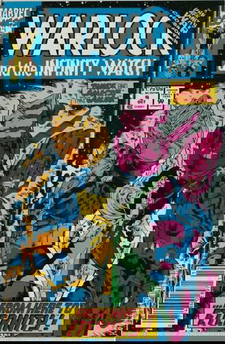 "Old Wounds" Galactus and Gamora meet with the Living Tribunal and Eternity. The Tribunal explains that his previous ruling prevents the Infinity Gems from functioning together. Because that verdict was in favor of Eternity, only Eternity can reverse it. However, the entity remains catatonic. Galactus bonds with Gamora against her will, and sends her into Eternity's body to heal him. Gamora recalls her childhood with Thanos. On Tartoonla #7, she disobeyed his order to remain aboard their ship. She explored the port city, but was attacked by a street gang. They inflicted "abuses never imagined" and "an offense to both the flesh and the spirit." When she regained consciousness, she saw that Thanos had killed the gang. Her body was battered and her clothes were torn. Thanos took her back to their ship, and rebuilt her body with cybernetic parts. Gamora vowed to never be used or abused again. Within Eternity, Gamora blasts the mystic bands that were causing his catatonia. She is surprised to see that this frees Infinity as well.