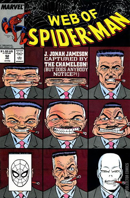 CHAINS A prisoner in his own home, J. Jonah Jameson shouts at Spider-Man as he swings by his building, however, the wall-crawler doesn't hear him. For days Jameson has been tied up while his captor, the Chameleon, has stolen his identity to gain information on the criminal underworld through the Daily Bugle. Jameson insists that the Chameleon can't keep up this charade forever, but the villain begs to differ. Changing his form to resemble Jonah, the Chameleon boasts that his abilities to mimic others is beyond reproach and he has everyone fooled. To prove his point, he tosses a number of newspapers onto Jonah's lap that contains editorials written by the Chameleon. Jonah complains that he can't read the papers with both of his hands handcuffed to his bed. The Chameleon decides there could be no harm in uncuffing one of Jameson's hands. However, he decides against it and lengthens the chain instead. When Jonah asks why he is doing this, the Chameleon explains that he is using the Daily Bugle to take down the Kingpin. Once the Chameleon has left, Jonah uses his extra reach to try and knock over his stand-up mirror. However, he only succeeds in moving it so he can see his reflection. Seeing his face looking back at him, Jameson begins to think back to his career as a newspaper reporter. J. Jonah Jameson was 20 years old and a reporter for the New York Herald Journal-Express. Sitting at a bar with an informant named Sam, Jameson hears how Sam has proof of police corruption in the city, but won't report on it because he is afraid of his life. Sam tells Jonah that he knows this because he is a bag man for the Manfredi family and delivers bribes to local police precincts. He is about to name a well-regarded police officer a shot is fired outside and it fatally strikes Sam. Shocked by this scene, J. Jonah Jameson looks out the shattered window and sees a police officer. Realizing that the story is true, the young reporter becomes afraid. By this point in his recollection, Jonah has managed to kick the mirror, shattering it. Grabbing a piece of broken mirror, ignoring the pain when it cuts into his fingers, Jameson reflects sun life off the mirror in the hopes of getting the attention of a passing traffic helicopter. Unfortunately, the pilot thinks the flashing light is nothing more than a prank being played by a kid. As the chopper flies by, Jonah begins cursing the pilot for not looking and his mind drifts back in time again. It's an angry J. Jonah Jameson who bursts into the office of his editor demanding to know why they killed his story on police corruption in the city. His editor tells Jonah that his account is missing facts and they could be looking a libel suit. Still unhappy, Jameson insists that he will get the needed facts. Storming out of the editor's office he is joined by Danny, the paper's copyboy. Danny begs Jonah to let him tag along, and thinking the kid needs to experience what being a real reporter is like, he agrees to let the boy come along, but warns him that it could get pretty rough. When they get outside, Jonah and Danny find a trio of cops waiting for them. They have come to warn Jonah against sticking his nose where it doesn't belong and to prove this point they beat him senseless. As the cops leave the scene, none are aware that someone with an interest in J. Jonah Jameson has been watching the whole scene. As Danny helps Jonah get off the ground, Jameson decides that he could use a strong drink. As they head to the nearest bar, the man who was watching follows after Jameson in his car. Remembering how he ignored the pain of a broken arm, Jonah considers his bleeding hand for a moment. Realizing the blood could be a good lubricant, he begins trying to pull his hand free from the shackle. As he strains he tries to ignore the pain. Jonah is at the bar nursing a drink with Danny when they are joined by William Walter Goodman, the owner of the Daily Bugle. Goodman offers Jonah a cigar, saying that they are better for him than the cigarettes he was smoking. Goodman explains that he had taken an interest in Jonah since he first started writing for the Daily Bugle and wonders why Jonah had quit. Jameson tells Goodman that he wanted to be a real reporter and the Journal-Express offered him the job. Showing Jonah the front page story of the Journal-Express, which features a story about Officer Kenner being hailed as a hero. Kenner was one of the cops who beat him up in the street. Jonah doesn't think Kenner is much of a hero. Goodman tells him some heroes work in the dark and reveal the truth to the public and asks him to come back to the Bugle, saying that he is a good judge of character. Jameson, seeing the opportunity to finally publish the stories he wants to tell, accepts the offer even if it means he might get killed. Jonah manages to pull off the shackle from his left hand, although the pain is excruciating. Struggling to concentrate, Jameson spots the key to the other shackle on his dress. He reaches out for it, but it is just out of reach. Now working for the Bugle, J. Jonah Jameson continues to pursue the corruption story. Finally, finds a source that was more reliable than Sam ever was, Officer Michael O'Hill. O'Hill gives him a key for a locker at the Port Authority where a ledger is kept to keep track of bribes police officers have received. The officer tells Jonah that Kenner is one of the many names on the ledger and explains that he came forward because he is ashamed of what's happening. Thanking O'Hill, Jonah and Danny head off to the Port Authority. However, when they arrive, Jonah spots Officer Kenner. He gives Danny the key and tells him to hide and makes a break for it himself. Wondering why Kenner is at the Port Authority, Jonah suddenly realizes that this is all a trap and begins looking for Danny. He is too late to stop Danny from opening the locker with the key, setting off a bomb that was rigged inside. As the dust settles, Jonah reaches out, calling 