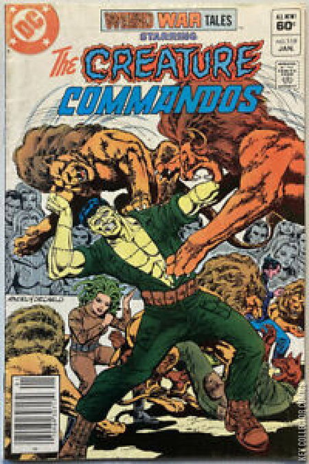In London, the Creature Commandos visit a wax museum on R&R and end up causing a stir and are asked to leave, causing them to again despair of ever being accepted by society.The next day they are sent on another mission, this time deep into the heart of German occupied Italy to discover the fate of one of the Allies' most important Italian informants, codename: Alesso. They parachute in a mile out from the village of Ebola and walk to town, only to find the roads lined with villagers who've been hung to death and left out to instill fear in the remaining populace.They find an old woman a short while later, about to be hung by Nazi soldiers. They save her and find out that she's, in fact, Alesso. Or, actually, Professor Alesso, an Italian scientist.Thankfully, the Germans didn't know who they'd captured, and the team are able to take the professor back to her home village where she could continue her work of spying on the Germans. The townspeople though shrank away from the team in fear, and so, when Professor Alesso shows them a time machine she had secretly invented in her basement, Dr. Medusa volunteers her team to be her test subjects to try it out, thinking that perhaps they could find the acceptance by society they sought in the future.It didn't turn out that way at all though, as, ten centuries in the future, they find themselves in a world filled with giant blonde clones, where there was a template for men and one for women and everyone looked just alike in that way. They were sentenced to die fighting lions becasue they were different. They managed to escape back to their time machine and return home.