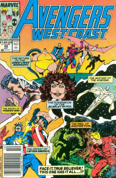 "Baptism of Fire!" The Scarlet Witch's shocking new identity! The full truth that links the Vision and the original Human Torch is revealed at last! Plus more on Tigra's frightening transformation and her mysterious relationship with the USAgent!