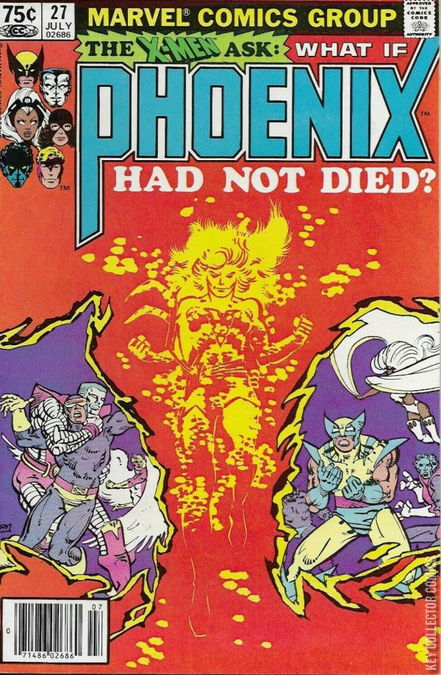Uatu ponders over the story of the Jean Grey as the Phoenix and recalls her journey alongside the X-Men. He sees an alternate reality where she did not die during the incursion with the Shi'ar. In this alternate reality, she was reborn again and when the X-Men are called to battle Galactus and Terrax in the Shi'ar galaxy, she unleashes the Phoenix force. She stops Galactus and is thanked by Lilandra for this. She begins to be overwhelmed by the Phoenix force and destroys asteroids and a small star. Upon returning to the X-Mansion, Shadowcat chastises her for destroying another star. Jean again delves into the Dark Phoenix form and destroys Shadowcat. The X-Men try to stop her and she kills Polaris as well. Cyclops tries to stop her and she kills him. This causes her to be engulfed in the Phoneix force and she destroys the Earth. Note: This issue contains the Hostess Superhero Ad, Spider-Man vs. The Human Computer!
