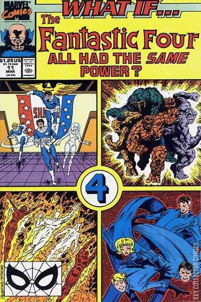 "What If the Fantastic Four All Had the Same Power?" This is a four part what if? story of realities where the Fantastic Four gain a common power from the cosmic rays. "What If the Fantastic Four All Had the Same Power as...?" Script and pencils by Jim Valentino. Chapter 1: "...as Human Torch?" Inks by Chris Ivy. Avengers cameo (Thor, Iron Man, Giant Man, and the Wasp). Chapter 2: "...as Mister Fantastic?" Inks by Hilary Barta. Chapter 3: "...as the Thing?" Inks by Steve Montano. Chapter 4: "...as the Invisible Woman?" Inks by Jeff Albrecht. Guest starring Nick Fury and Doctor Doom. Valentino/Todd McFarlane cover.