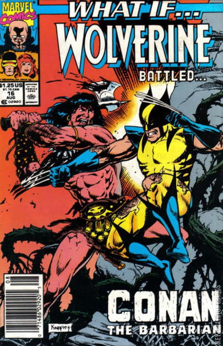 What if Wolverine had Lived During the Age of Conan the Barbarian? - Script by Glenn Herdling, pencils by Gary Kwapisz, inks by Ian Akin and Brian Garvey. Cover art by Gary Kwapisz. Wolverine is hurled back in time during the Phoenix Saga, and encounters Conan and Red Sonja. Also: What if Wolverine REALLY met Conan the Barbarian?! - script by John Rozum, art by Armando Gil.