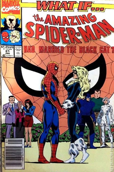 Continued from the last issue: Part two of "What if Spider-Man had Married the Black Cat?" - It's Spidey against Silver Sable, the Sandman, Paladin and the Vulture, who has discovered his true identity. Script by Danny Fingeroth, pencils by Jim Valentino, inks by Chris Ivy. Cover pencils by Jim Valentino, inks by Bob Wiacek.