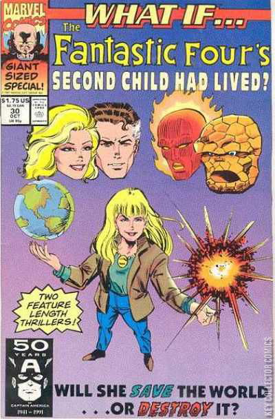 This is a double realities what if? story where the Fantastic Four's second child lived. One reality is if their child lived to help people and make the world a better place. In the second reality their child lived to be a evil monster.