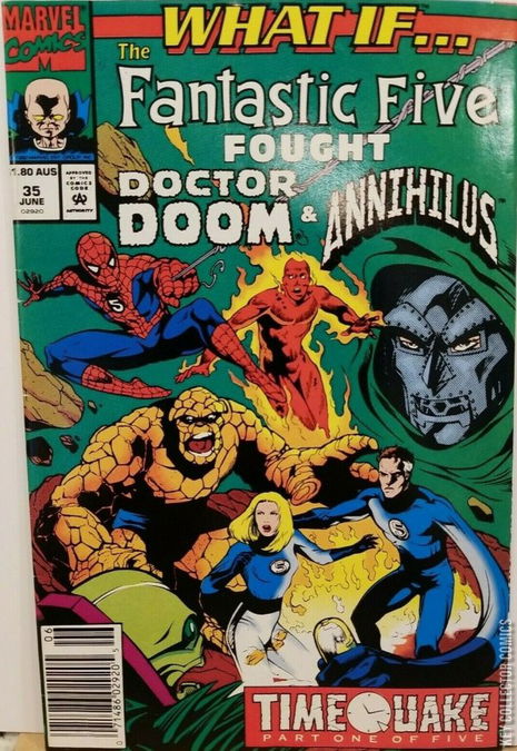 The basis of the "What If?" series is to give Marvel fans a glimpse into the road less travelled by their favorite and not-so-favorite heroes with mild to moderate success. It's also worth noting that, ninety percent of the time, "What If?" stories don't have a happy ending.Previously in "What If?", Spider-Man joined the Fantastic Four, making it the Fantastic Five. However, at the end of that story, Sue left the team, making it once again the Fantastic Four. In the intervening time, however, Sue has rejoined the team and was impregnated by Reed Richards. Thus our story begins, after Uatu has his say.PlotThe book begins with Uatu telling us about the Time Keeper's plot involving Immortus and his culling of divergent realities. The plot succeeded to a point, failing only after the intervention of the West Coast Avengers. However, the Time Keepers are up to their old tricks, and are letting Uatu take a front row seat.The story of "What If the Fantastic Five Had Invaded the Negative Zone?" begins with the male members of the team sitting at the Baxter Building asking Reed if he should be at the hospital with Sue, who is about to deliver a baby. Reed snaps at them, and then reveals that the accident that gave the original Fantastic Four their powers may now mean the death of Sue and her unborn child. The only thing that can save them is a rare element that can only be found in the Negative Zone, where Reed plans to go alone.The rest of the FF won't have it, and soon the team straps on harnesses and are off to the Negative Zone. At this point, however, the Watcher announces his confusion, as Sue should be with Namor at this point, not lying in a hospital bed with Reed's unborn child. The Time Keepers aim to keep that child unborn, and Uatu asks them why. The answer: ANNIHILUS, THE LIVING DEATH THAT WALKS! One of Annihilus' scavengers swoops in and grabs Spider-Man, only to toss him on a rock a few minutes later. The rock is actually a magnet, and it's dragging Spider-Man...