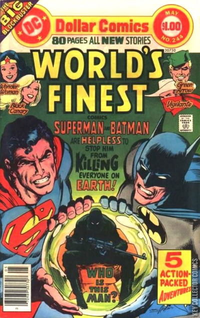 Three Billion Targets! (Superman and Batman / written by Bob Haney)Rainbows of Doom (Black Canary and Green Arrow / written by Jack Harris)Slings and Arrows (Green Arrow / written by Tony Isabella)Explosion in a Small Town! (Vigilante / written by Bill Kunkel)Jeopardy -- Times Two! (Wonder Woman / written by Dennis O'Neil)