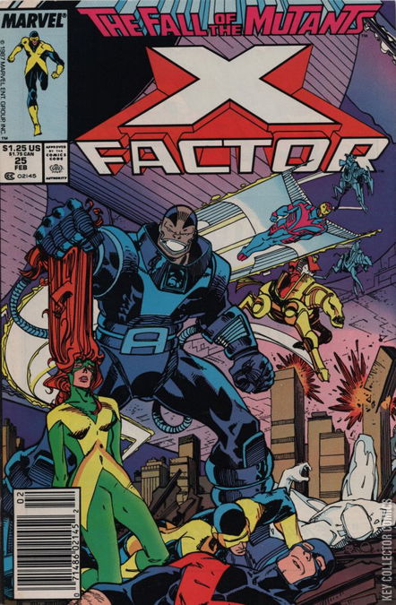 "Judgement Day!" The double-sized issue that's been two years in the making! The final battle with Apocalypse! New York in ruins! A traitor in the midst of X-Factor! New directions for the team! The fate of the Angel! And need we ad...the Fall Of The Mutants? SPOILERS Apocalypse has just released his horsemen onto the world, allowing them to attack civilians. Beast and Iceman manage to work together to free the imprisoned X-Factor, allowing Marvel Girl and Cyclops to escape into the open, while Beast and Iceman remain on the ship. On the ground, Marvel Girl assaults Famine, who gets one good shot at Jean, before being teleported away...