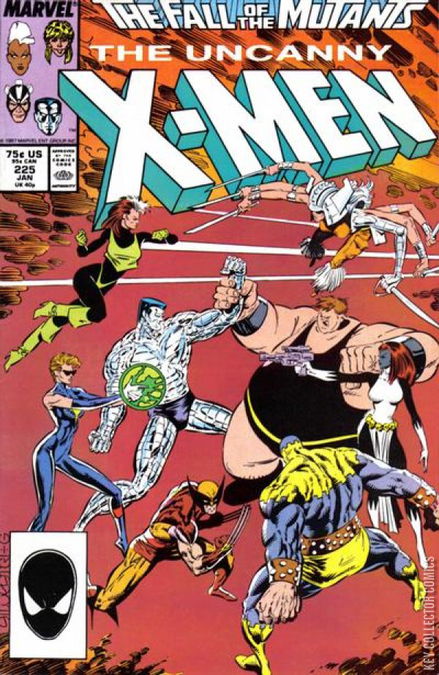 Colossus is in Scotland (flown there after the Mutant Massacre in issue #216), and is no longer stuck in his armored form. However, he apparently doesn't have much control over it, and it pops out while he's talking to some kids, scaring them half to death. He gets a visit by a girl (a projection of Roma?), who convinces him that the X-Men need him. After she leaves, his sister, Illyana, transports in, and agrees to take him to the X-Men. Meanwhile, the Adversary has captured Roma and taken over her Starlight Citadel. In Dallas, the X-Men arrive at Eagle Plaza to find an empty building. Wolverine enters and is cut down by lasers. The team rescue him and are ambushed by Freedom Force outside! A big fight starts, Colossus teleports in, and then a huge hole in the sky appears over their...