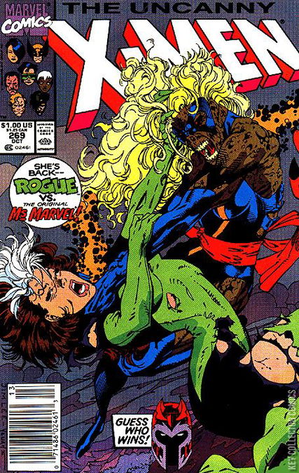 Rogue is thrown out from the Siege Perilous and lands in the Australian Outback at the X-Men‘s base. Rogue is confused as she has learned that Mystique has been murdered, she has lost her Ms. Marvel powers, and that the HQ is back in the hands of the Reavers. Carol Danvers now has a body of her own again and while she fights the Reavers, Rogue absorbs Gateway’s powers to teleport herself and Danvers away. Carol ends up on Muir Isle and falls under the control of the Shadow King and is sent after Rogue. Rogue has ended up in the Savage Land and soon attacked by a Shadow King possessed Ms. Marvel. Rogue wins but doesn’t want to take Carol’s life a second time. Ms. Marvel almost kills Rogue but is saved by Magneto.