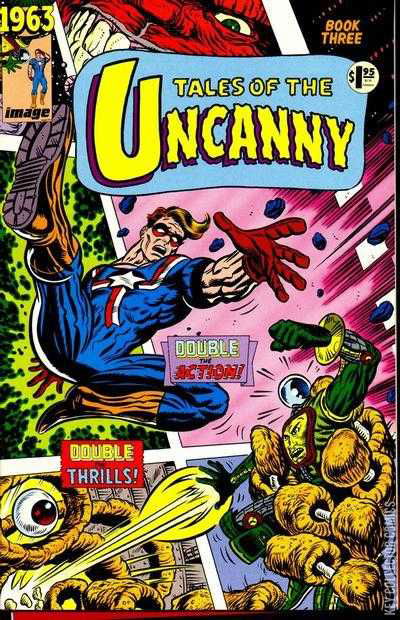 This comic book is the Book Three of the "1963" series, and features two stories. The first one involves the character "U.S.A." , the "Ultimate Special Agent", as he is hired to impersonate Pres. Kennedy during his infamous and fatal ( in our reality ) motorcade in Dallas. "U.S.A." encounters assasins along with a Russian supervillain called the "Red Brain".The second story involves "The Hypernaut" as he is caught up in a dimensional portal and encounters alien creatures.