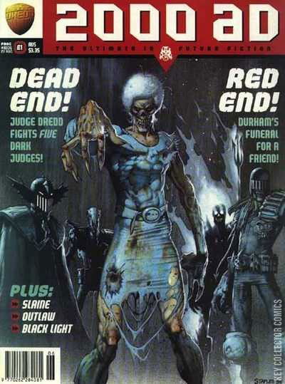 Slaine: The Treasures of Britain (Pt6) Black Light: Lords of Creation (Pt1) Durham Red: Epicedium Outlaw: Spaceship Graveyard (Pt2) Judge Dredd: Dead Reckoning (Pt7)
