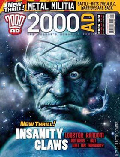After the eight part 'The Vort' in Progs 1589-1596 and the surprise reveal on the last page of the last episode, Lobster Random once again takes centre stage, with reporter Meridien Bless in tow. Cover: Nick Percival (Lobster Random) Droid Life (Cat Sullivan) Judge Dredd - Mutie Block (part 2) (John Wagner - Kev Walker) The Red Seas - Old Gods (part 2) (Ian Edginton - Steve Yeowell) A.B.C. Warriors - The Volgan War - Book Three (part 1) (Pat Mills - Clint Langley) Stalag 666 (part 2) (Tony Lee - Jon Davis-Hunt) Lobster Random - The Forget-Me-Knot (part 1) (Simon Spurrier - Carl Critchlow)