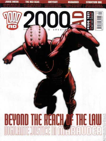 Cover: Frazer Irving (Marauder) Judge Dredd - The Ecstasy (part 5) (John Wagner - Paul Marshall) The Red Seas - Signs and Portents (part 6) (Ian Edginton - Steve Yeowell) Greysuit - Book Two - The Old Man of the Mountains (part 6) (Pat Mills - John Higgins) Marauder (part 6) (Robbie Morrison - Richard Elson) Strontium Dog - Blood Moon (part 6) (John Wagner - Carlos and Hector Ezquerra)