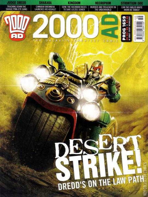 Cover: Neil Roberts (Judge Dredd) Judge Dredd - Pink Eyes (part 1) (John Wagner - Mike Collins) Shakara - Destroyer (part 10) (Robbie Morrison - Henry Flint) Kingdom - Call of the Wild (part 10) (Dan Abnett - Richard Elson) Necrophim - Hell's Prodigal (part 5) (Tony Lee - Lee Carter) Strontium Dog - The Mork Whisperer (part 9) (John Wagner - Carlos and Hector Ezquerra)