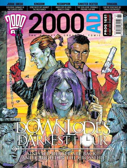 Cover: Simon Davis (Sinister Dexter) Droid Life (Cat Sullivan) Judge Dredd - Tour of Duty - Pink Eyes (part 3) (John Wagner - Mike Collins) Kingdom - Call of the Wild (part 12 - final part) (Dan Abnett - Richard Elson) Necrophim - Hell's Prodigal (part 7) (Tony Lee - Lee Carter) Sinister Dexter - Better the Devil Ye Know (part 1) (Dan Abnett - Anthony Williams/Rob Taylor) Shakara - Destroyer (part 12 - final part) (Robbie Morrison - Henry Flint)
