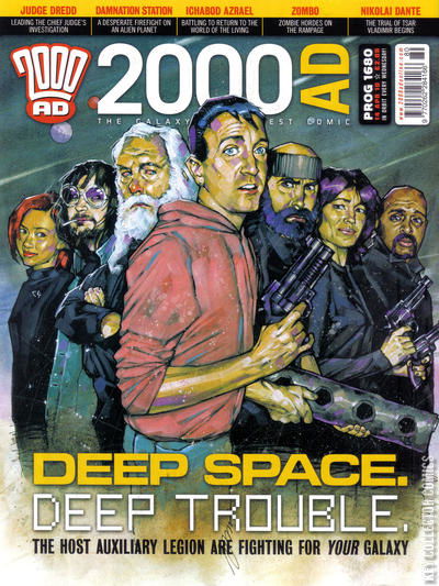 Cover: Simon Davis (Damnation Station) Droid Life (Cat Sullivan) Judge Dredd - Tour of Duty - The Talented Mayor Ambrose (part 7) (John Wagner - Colin Macneil) Damnation Station - To the Dark and Empty Skies (part 4 - final part) (Al Ewing - Simon Davis) The Grievous Journey of Ichabod Azrael (and the Dead left in his Wake) (part 4) (Rob Williams - Dom Reardon) Zombo - Zombo's Eleven (part 6) (Al Ewing - Henry Flint) Nikolai Dante - Heroes be Damned (part 2) (Robbie Morrison - Simon Fraser)