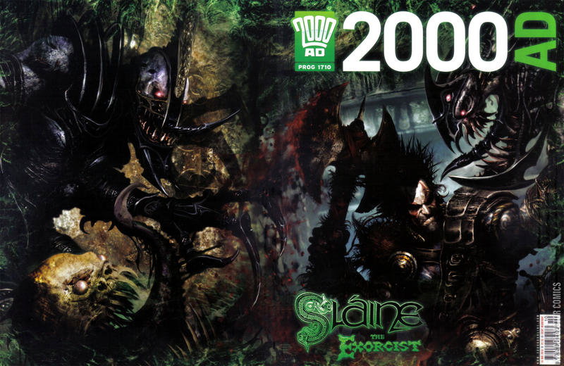 Wraparound cover: Clint Langley (Slaine)Droid Life (Cat Sullivan)Judge Dredd - Come Die With Me (part 1) (John Tomlinson - Nick Dyer)Sinister Dexter - Are You Being Severed? (part 2) (Dan Abnett - Anthony Williams/Rob Taylor)Future Shocks - My Heaven (Alec Worley - Inaki Miranda)Slaine - The Exorcist (part 2) (Pat Mills - Clint Langley)Dandridge - Return of the Chap (part 1) (Alec Worley - Warren Pleece)