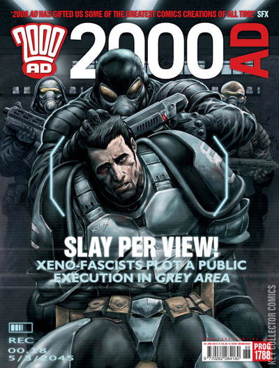 Cover: Karl Richardson (Grey Area)Judge Dredd - Chaos Day (part 2 - final part) (John Wagner - Henry Flint)Durham Red - The 'Nobody Wants This Job' Job (part 4) (Alan Grant - Carlos Ezquerra)Grey Area - One of Our Own (part 4 - final part) (Dan Abnett - Lee Carter)Tharg's Future Shocks - Downloan (David Baillie - Nick Dyer)Nikolai Dante - Sympathy for the Devil (part 3) (Robbie Morrison - Simon Fraser)