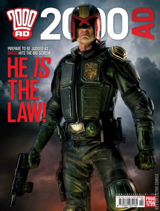 It's a wrap! Behind the Dredd movie cover (UK release date 7 September) are the final episodes for all the current stories (making way for an all-new line-up in prog 1800).Photo cover: Karl Urban as Judge Dredd (digital edit: Simon 'Pye-01' Parr)Droid Life (script/art: Cat Sullivan)Judge Dredd - Innocence (part 2 - final part) (Rob Williams - Laurence Campbell)Lenny Zero - Zero's 7 (part 8 - final part) (Andy Diggle - Ben Willsher)Aquila - Blood of the Iceni (part 8 - final part) (Gordon Rennie - Leigh Gallagher)Tharg's 3rillers - 15 (part 3 - final part) (Tom Taylor - Jon Davis-Hunt)The Grievous Journey of Ichabod Azrael (and the Dead left in his Wake) - Manhunt (part 11 - final part) (Rob Williams - Antonio Fuso)