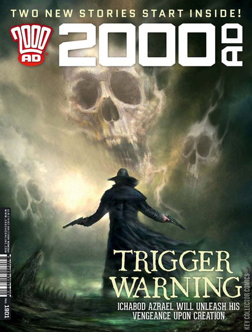 With Prog 1901, the Galaxy's Greatest Comic continues its universe-shattering line-up specially designed for new and lapsed readers with second instalments of Judge Dredd: Block Judge by John Wagner and Carlos Ezquerra, Kingdom: Aux Drift by Dan Abnett, Richard Elson and Abigail Ryder, and Stickleback: The Thru'Penny Opera by Ian Edginton and D'Israeli. Meanwhile, The Grievous Journey of Ichabod Azrael (And The Dead Left In His Wake) by Rob Williams and Mike Dowling continues its dread tale, with Ichabod standing on the shores of the River Stix, his final hope in ruins - but what will he do next? And 2000 AD's creator Pat Mills returns with John Higgins and Sally Hurst for the new series of his dark and nasty 'superspy' saga, Greysuit.