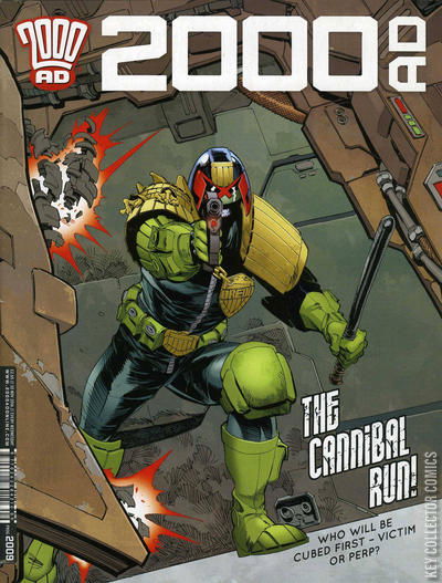 In this issue: Judge Dredd: Cube Root of Evil by Arthur Wyatt (w), Jake Lynch (a), John Charles (c), Annie Parkhouse (l) Savage : The Märze Murderer by Pat Mills (w), Patrick Goddard (a), Annie Parkhouse (l) Hunted by Gordon Rennie (w), PJ Holden (a), Len O’Grady (c), Simon Bowland (l) Future Shocks : Return of the Revolutionaries by Rory McConville (w), Eoin Coveney (a), Ellie De Ville (l) Flesh : Gorehead by Pat Mills (w), Clint Langley (a), Ellie De Ville (l)