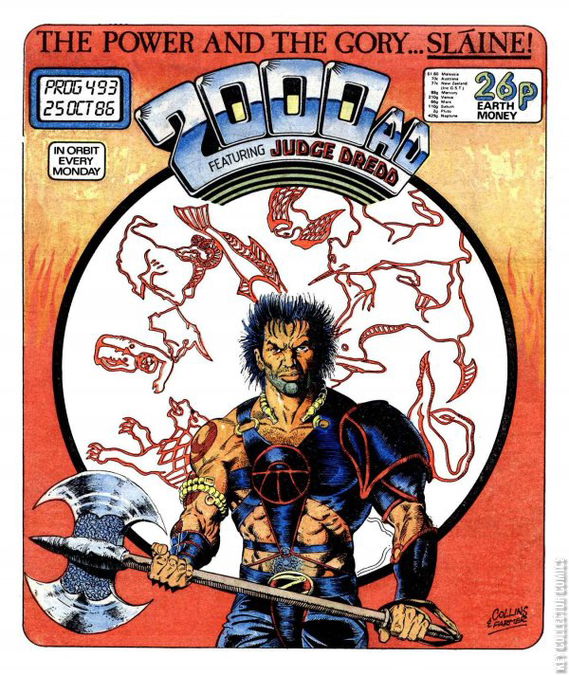 Judge Dredd Slaine: Spoils of Annwn (Pt1) Ace Trucking Co: The Garpetbaggers (Pt18) Strontium Dog: Incident on Mayger Minor (Pt4) Sooner or Later (Pt25) Tharg's Future Shocks: Say 'Aaaaagh!'