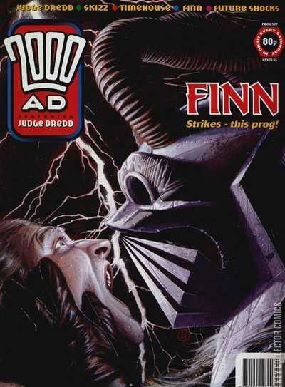 Judge Dredd: The Exterminstor (Pt9) Finn: The Origin (Pt4, final part) - Script: Pat Mills & Tony Skinner; Art: Liam Sharp; Letters: Annie Parkhouse Skizz, Book III: The Gunlords of Omega Ceti (Pt16) Timehouse: Century Duty (Pt9) Tharg's Future Shocks: The Subliminals