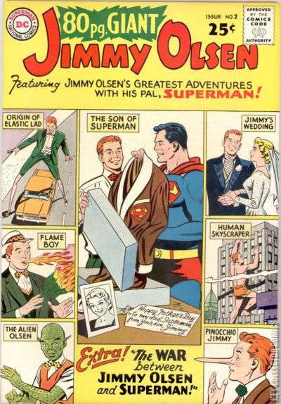"The War Between Jimmy Olsen and Superman", "The E-L-A-S-T-I-C Lad", "The Jimmy Olsen from Jupiter", "The Super Nose for News", "M.C. of the Midnight Scare Theater", "The Human Skyscraper", "The Human Flame-Thrower", "The Son of Superman", "Jimmy Olsen's Wedding".