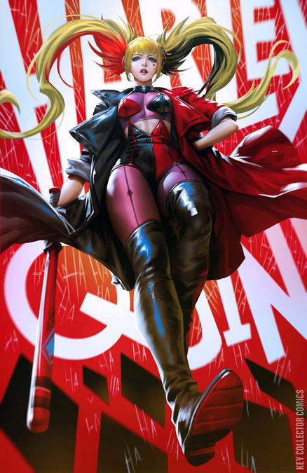 MEET THE HARLEY QUINN REVENGE SQUAD! It's me, Harley, versus my own greatest enemies of all time--the Harley Quinn Revenge Squad! They're so bad you couldn't find a hole deep enough to lock these folks away in! We've got the legally distinct hunter guy, the backward arms guy, the penny pincher, the corporate art security man, the tech bros, and the worst of the lot--the squad's shadowy leader! This one's so evil theyd make Lex Luthor's secret flower garden wilt with just one glare! One glare! Don't get me started on what'd happen with two!
