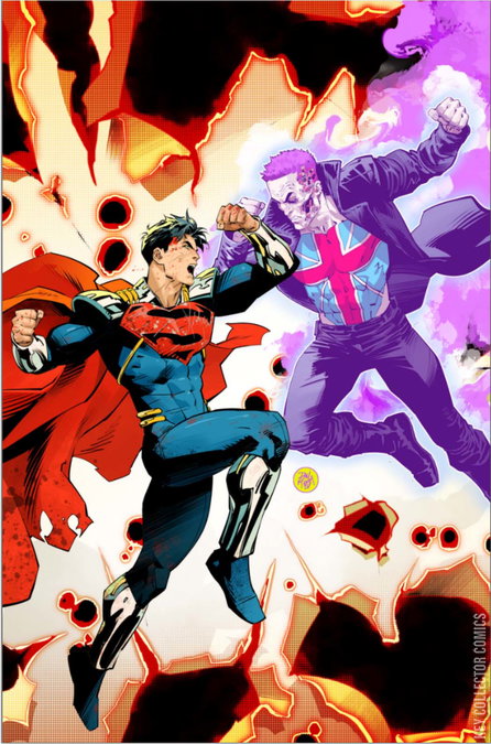 SUPERBOY-PRIME VS. MANCHESTER BLACK FOR THE SOUL OF DC COMICS! The villainous Manchester Black demands to be resurrected and thinks Superboy-Prime knows how to give him his life back. But it's more than that. Manchester Black wants to escape the world of comics and come to our world! It's meta versus meta! If Prime survives, he will still have to deal with members of the Super-Family, who are not happy he wants to be Superman! This all builds up to next month's Superman blockbuster summer story!