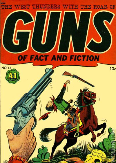 Home / Magazine Enterprises / A-1 / A-1 #13 Magazine Enterprises Released June 1948 A-1 #13 Add to Collection Want It Synopsis No synopsis available. Issue 13 of 139 Add to Collection Buy it on eBay Buy on eBay Low $35 Mid $105 High $350 Synopsis No synopsis available. Details Series A-1 Cover Date June 1948 Pages N/A UPC N/A Cover Price $0.10 Final Order Cutoff N/A Creators No creators listed. Price Guide Log in or subscribe to access detailed graded price information and market insights. Log In Subscribe