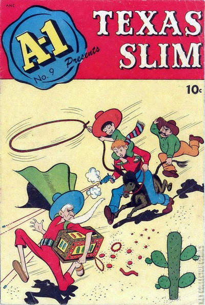 Home / Magazine Enterprises / A-1 / A-1 #9 Magazine Enterprises Released June 1947 A-1 #9 Add to Collection Want It Synopsis No synopsis available. Issue 9 of 139 Add to Collection Buy it on eBay Buy on eBay Low $35 Mid $105 High $350 Synopsis No synopsis available. Details Series A-1 Cover Date June 1947 Pages 36 UPC N/A Cover Price $0.10 Final Order Cutoff N/A Creators No creators listed. Price Guide Log in or subscribe to access detailed graded price information and market insights. Log In Subscribe
