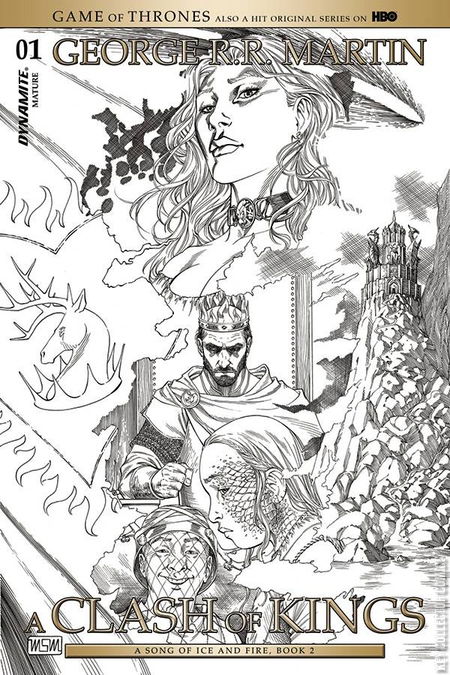 George R. R. Martin's A Song of Ice and Fire saga continues in the official comic book adaptation by Dynamite Entertainment! Following the events of A Game of Thrones, Westeros is embroiled in civil war, while Daenerys Targaryen -- as heir to the Targaryen dynasty, seeks to reclaim the Iron Throne. Arya, with the help of Yoren, a brother of the Night's Watch, has escaped from King's Landing, but the road to the Wall brings its own dangers. Meanwhile, Sansa attends a tournament on the sadistic King Joffrey's name-day, and Bran, in Winterfell, suffers from strange dreams of wolves...