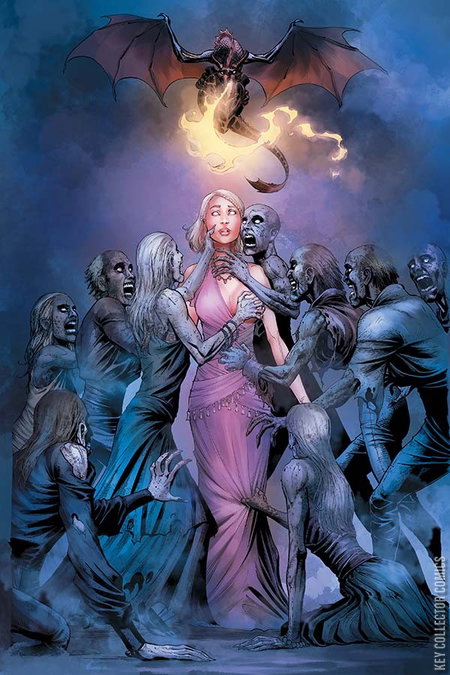 As the war rages, Lord Tywin's men probe Riverrun's defenses, pushing Edmure Tully to the battlefield in a vainglorious quest for honor. Meanwhile, in the distant land of Qarth, Daenerys accepts Pyat Pree's invitation to visit the House of the Undying, where the young leader faces visions of both the future and the past. Tensions continue to rise as the cast of George R. R. Martin's fantasy epic face the grim realities of their own mortality. All this and more in Dynamite Entertainment's bold visual adaptation of A Song of Ice and Fire.