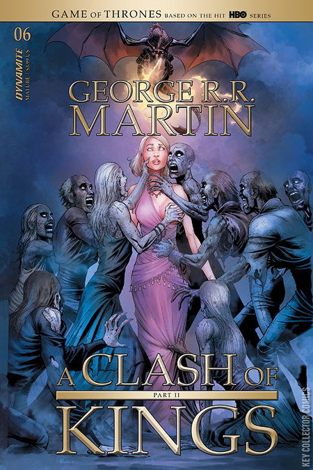 As the war rages, Lord Tywin's men probe Riverrun's defenses, pushing Edmure Tully to the battlefield in a vainglorious quest for honor. Meanwhile, in the distant land of Qarth, Daenerys accepts Pyat Pree's invitation to visit the House of the Undying, where the young leader faces visions of both the future and the past. Tensions continue to rise as the cast of George R. R. Martin's fantasy epic face the grim realities of their own mortality. All this and more in Dynamite Entertainment's bold visual adaptation of A Song of Ice and Fire.