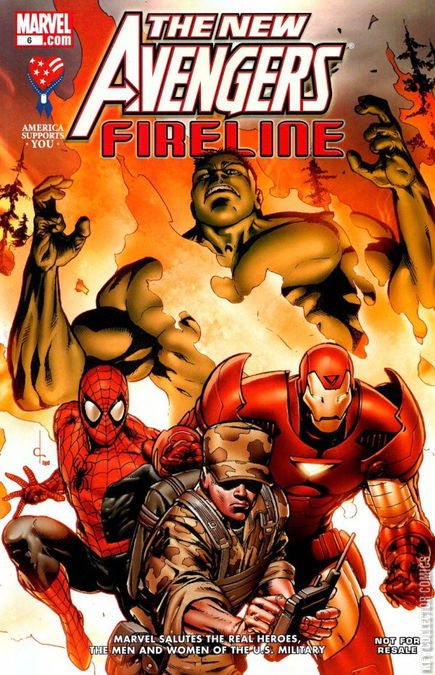 "Fireline." The Hulk has a chance encounter with US Army Guardsmen on a training patrol in Southern California. As he leave he accidentally starts a wildfire that Iron Man, Spider-Man and the Human Torch all respond to and help battle.