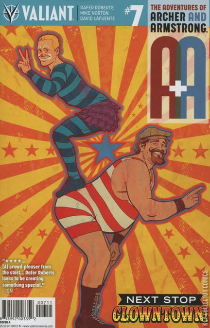No more clowning around! The hunt for Armstrong’s estranged wife is taking a strange turn through America’s most bizarre traveling circus...and it’s no laughing matter! Besieged by a deranged troupe of malformed Armstrong clones, the world’s hardest-traveling adventurers may have finally met a match more dysfunctional than they are! And if that wasn’t enough absurdity for one day, a Russian science bear is about to come barreling through the big top with grave news for Archer & Armstrong! NEXT STOP CLOWNTOWN continues its precarious trip trough the fetid underbelly of Americana here…and rising star Rafer Roberts (HARBINGER RENEGADES) and Eisner Award winner Mike Norton (Revival) are coming along for the ride!