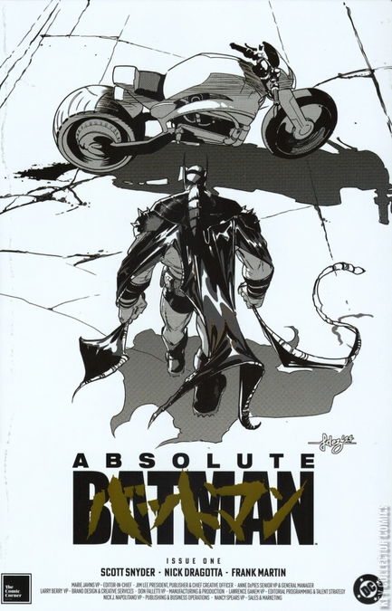 BATMAN LEGEND SCOTT SNYDER AND ICONIC ARTIST NICK DRAGOTTA TRANSFORM THE DARK KNIGHT'S TALE FOR THE MODERN AGE! Without the mansion...without the money...without the butler...what's left is the Absolute Dark Knight!