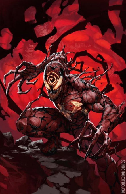 CHAPTER ONE: THE BLEEDING KING / CHAPTER TWO: THE GOD SON / CHAPTER THREE: THE LONG RED DARK After turning Venom’s world upside down a year ago, Donny Cates and Ryan Stegman are about to put the Sinister Symbiote through hell again, only this time CARNAGE has come calling, and everyone who’s ever worn a symbiote is dead in his sights! He’s skirted the periphery of the Marvel Universe for months, but Cletus Kasady at last stands poised to make his grand return to New York in a blistering 60-PAGE story…and he wants to paint the town red!