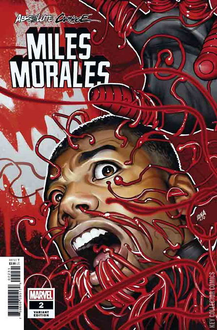 CONSUMED BY CARNAGE! Miles sacrificed himself protecting others, and was taken by Carnage’s dark doppelgangers! Now Kletus is sending Miles after one of Peter Parker’s friends, and if Miles can’t stop himself, he better hope someone shows up who can beat a dark symbiote-powered Spider-Man! The events of this issue take place after Absolute Carnage #2 . ABSOLUTE CARNAGE TIE-IN