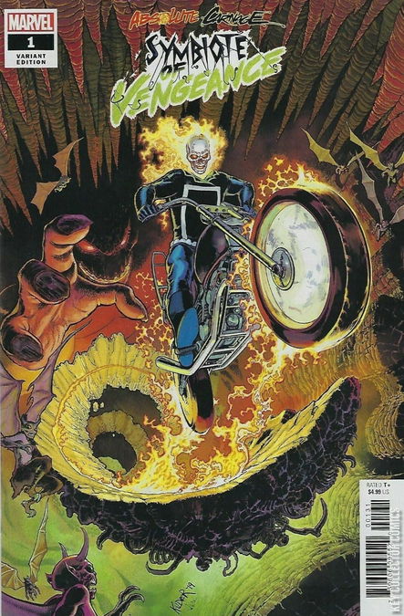 Carnage is hunting down previous symbiote hosts for codices that will unlock a direct link to the symbiote god Knull! And he’s not asking nicely…he’s taking them by force! Which means former Ghost Rider Alejandra Jones is next on his hit list! With Johnny Blaze preoccupied as Hell’s king, it’s up to Danny Ketch to ride again and keep Alejandra out of Carnage’s clutches! This issue takes place before Absolute Carnage #1 . ABSOLUTE CARNAGE TIE-IN